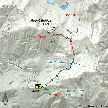 In about a mile you break over a saddle and come upon Lake Christine.