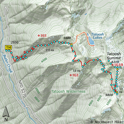 to Tatoosh Lakes the trail parallels the ridgeline for the next 2 miles.