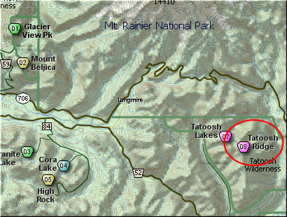 its way up the ridgeline to the top of Tatoosh Ridge. From the summit