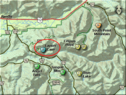 From Randle, travel south on State Road 131, crossing the Cowlitz River and in a mile