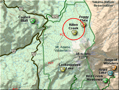 for another 19 miles to Trout Lake and the junction to Mt. Adams Road. Bear