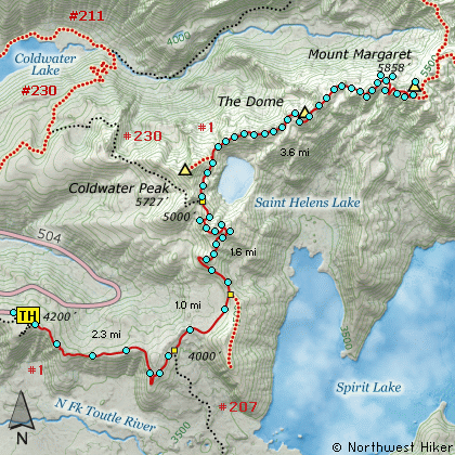 The hike follows the Boundary trail from the Johnston Ridge Observatory