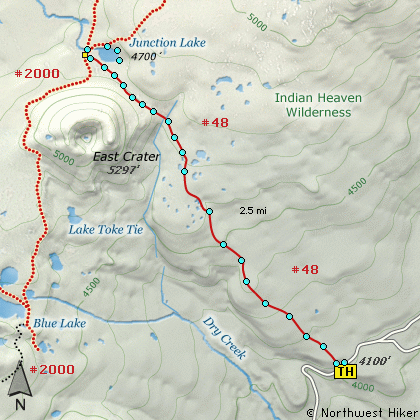 popular Thomas Lake or Cultus Camp approach to Indian Heaven.
