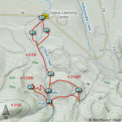 Walk across the road an begin the hike up Covell Creek.