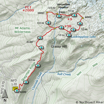 toward Mt Adams until it intersects Trail #9. Trail #9