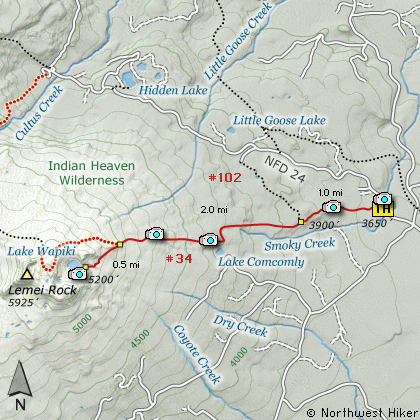 and you will pass the trailhead for Wapiki Lake and Lemei Rock.