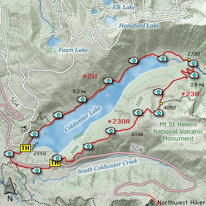 Map of the Mt St Helens, Coldwater Lake Loop Hike