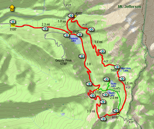 You will need to cross the rather challenging Hunts Creek. The trail follows the eastern shoreline of Pamelia Lake and eventually connects with the very trail that you were on when you began the loop. Just follow the trail that brought you to Pamelia Lake back to your vehicle. Enjoy one of the Jefferson Wilderness most beautiful hikes.