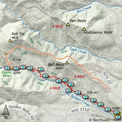 Map of the Little Badger Creek Hike