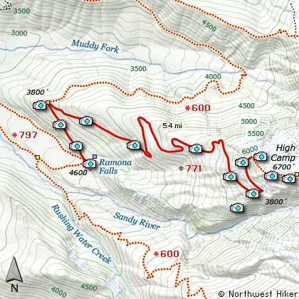 The hike to Yocum Ridge begins just as if you were going to Ramona Falls. You start at the same