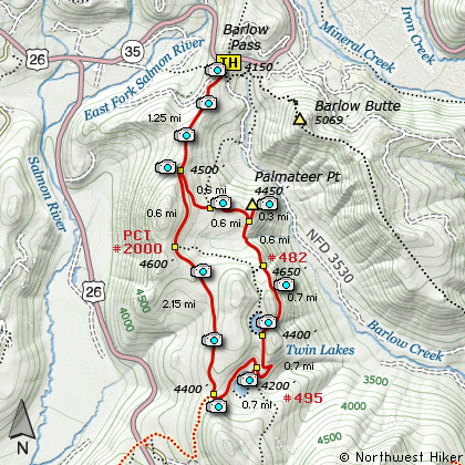 Map of the Barlow Pass, Twin Lakes, Palmeteer Point Hike